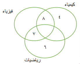 في الشكل المجاور ماعدد الطلاب المشتركين في الرياضيات و الفيزياء فقط