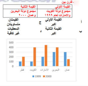 اذا كان أ ، ب ، ج ، د ، هـ اعداد طبيعية مرتبة تصاعدي علي خط الاعداد فقارن بين
