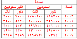 من البيانات بالجدول التالي يتضح ان معدل البطالة للاناث غير السعوديات