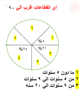 كم عدد االجزاء الناتجة عن تقسيمالدائرة بـ 5 مستقيمات تمر بالمركز ؟
