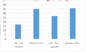 الرسم البياني التالي يوضح عدد الرجال والنساء السعوديين والغير سعوديين اي الاتي غير صحيح ؟