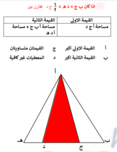 اذا كان الاول يقطع مسافه من (ت) الي (ج) مرورا ب(أ) والتاني يقطع مسافه من (ت) الي (ج) مرورا ب(ب) (ت) تنصف أ ب ، فكم